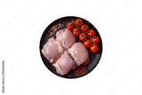 Chicken or turkey raw thigh fillet, skinless and boneless poultry meat. Chicken thigh fillet
