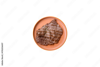 Grilled beef steak, meat cooked on barbecue with salt and pepper. Grilled beef steak