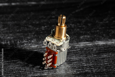 guitar push pull potentiometer on black wood background