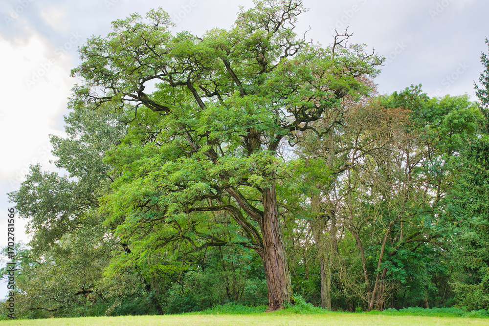 Rogalin Landscape Park, large, ancient oaks, view in the early stages of autumn