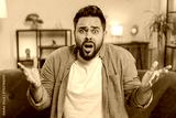Shocked Caucasian young man with brown hair watching TV feeling hopelessness and loneliness, nervous breakdown, loses play game becoming surprised by lottery results, bad fortune, loss, unlucky news.
