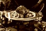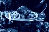 Grilled pork barbecue with onion and herbs