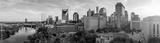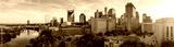 Panoramic view of Nashville skyline at sunset with river, skyscrapers, and city landmarks