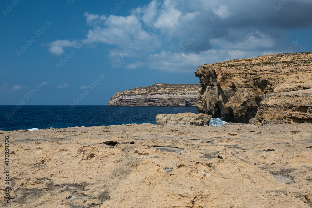 Blue hole and the collapsed Azure window. Gozo, Malta