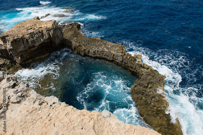 Blue hole and the collapsed Azure window. Gozo, Malta