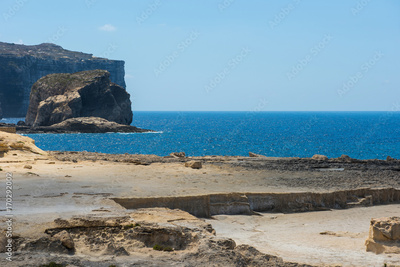 Blue hole and the collapsed Azure window. Gozo, Malta