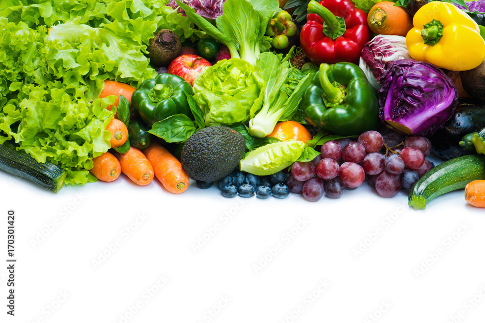 Various fresh fruits and vegetables organic for eating healthy