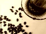 Freshly brewed black coffee served in an inverted cup with coffee beans spread around, representing lifestyle and cafe culture.