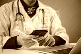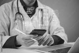 AI, healthcare doctor uses a mobile smartphone app to manage data and EHR for telemedicine and faster diagnostics, ensuring secure digital patient care and efficient clinical decisions.