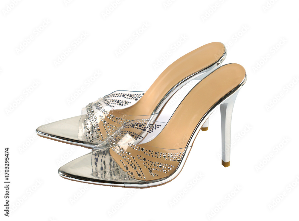 close up on high heel slide sandal isolated on white background