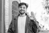 Handsome Arab man at outdoors saluting with hand with happy expression