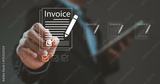Approve invoice and financial management concept with digital document authorization of business accounting workflow payment verification, corporate finance control and modern expense efficiency.