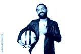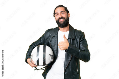 Young man with beard with a motorcycle helmet over isolated chroma key background giving a thumbs up gesture