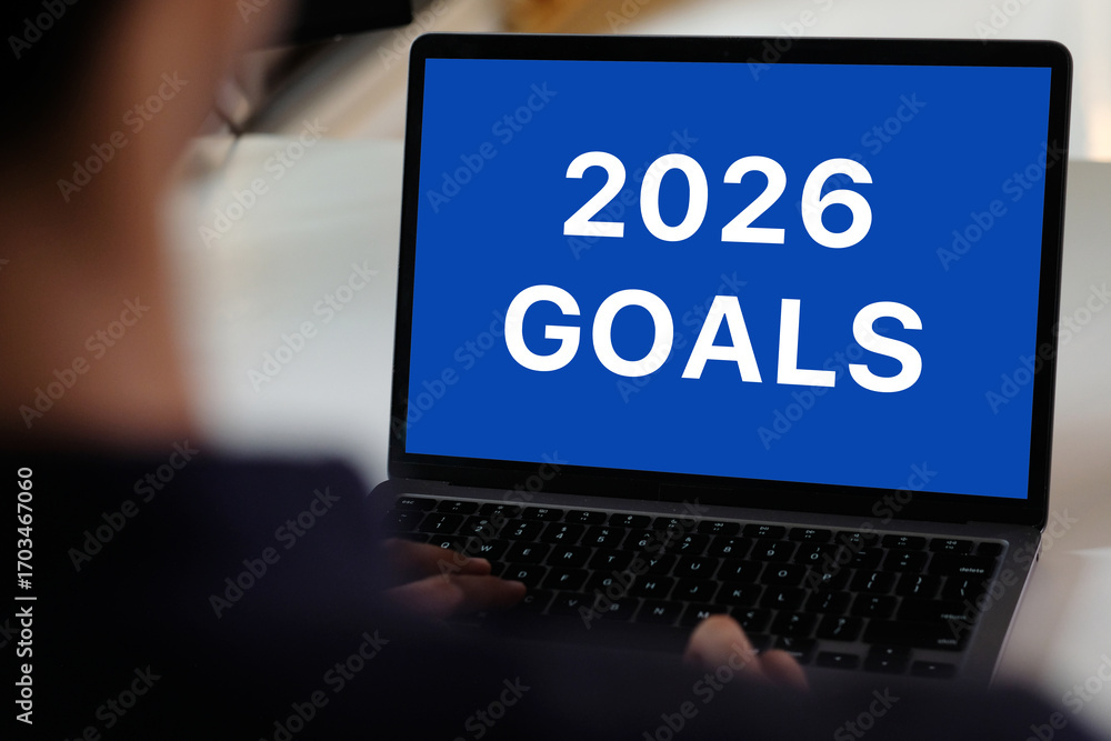 2026 goals on laptop computer screen, 2026 business new year aim to success, technology