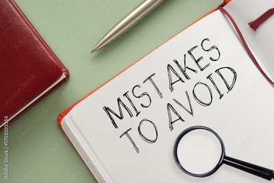 Mistakes to avoid message written on notebook page. Conceptual mistakes to avoids symbol