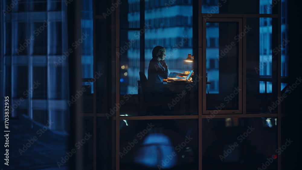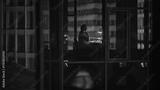 Silhouette leader speaking window view. Office employee talking mobile phone