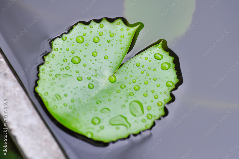 rain droplet on lotus leaf or rain drop or Nelumbo, Nelumbo nucifera Gaertn