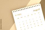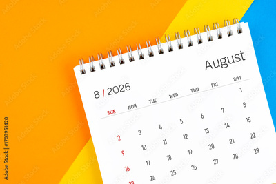 August 2026 month desk calendar on colorful.
