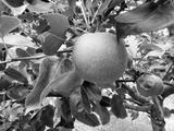 Close up of freshly ripe Asian pear fruit hanging from tree ready to be harvest for fall season