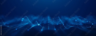 Abstract Futuristic Technology Data Wave Background with Glowing Blue Data Wave, AI Technology, Digital Network, and Innovation concept.
