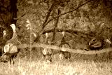 Turkeys in the grass