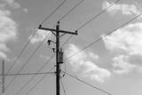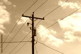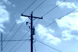 high voltage power lines with transformer and blue sky
