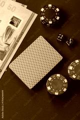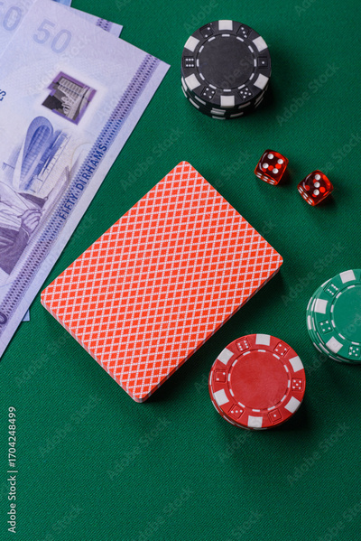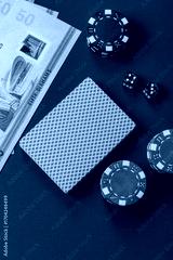 Casino game in the United Arab Emirates, dirham, chips, cards. Gambling in casinos in the Emirates