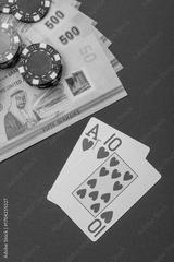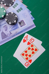 Casino game in the United Arab Emirates, dirham, chips, cards. Gambling in casinos in the Emirates