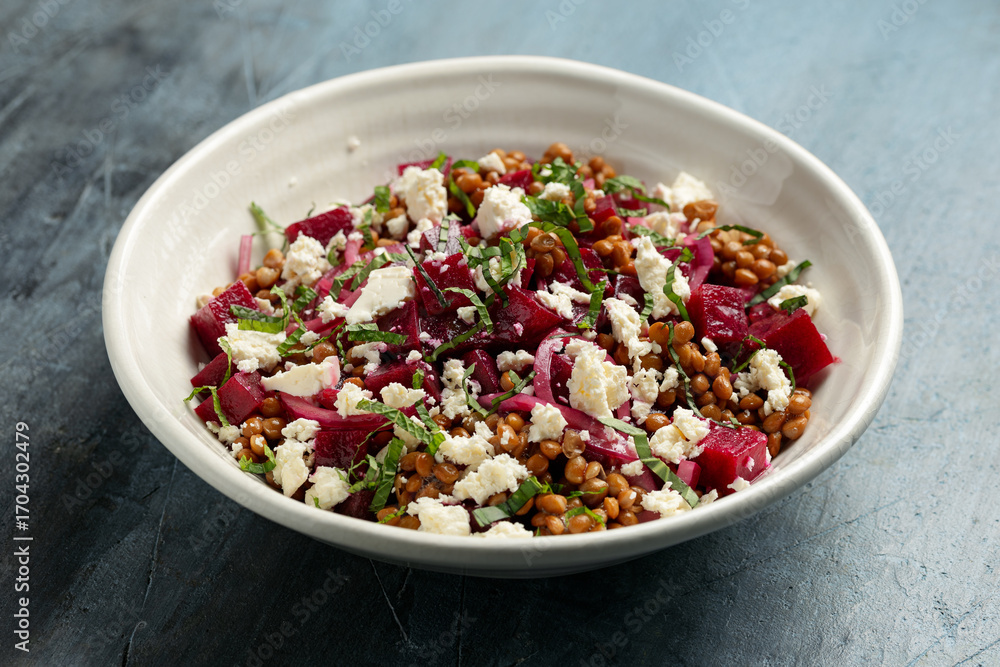 Beetroot Feta Cheese Lentil Salad. Healthy Food