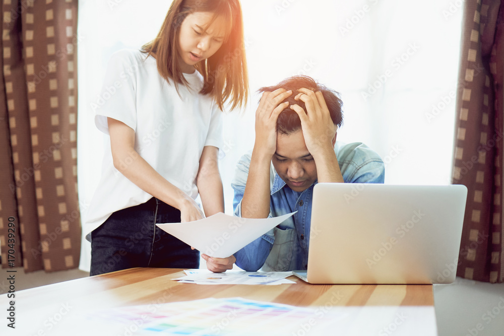 Young women are scolding employees who work late at work, Causing damage. The concept of punctuality makes it professional.