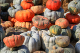 Close up shot of assorted pumpkins fresh from farm and up for sale in Michigan.