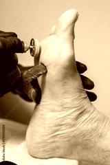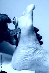Rejuvenating pedicure for seniors. A beautician smoothes a woman's feet with dry, cracked skin. A pedicure at a beauty salon. Taking care of yourself