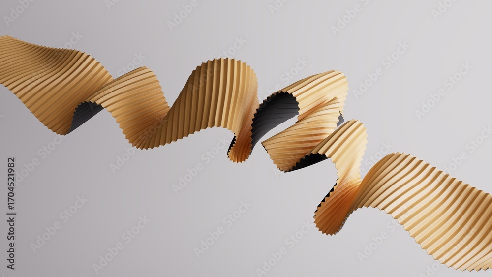 Golden and black zigzag paper sculpture with elegant folds on minimal geometric background. 3d render illustration.