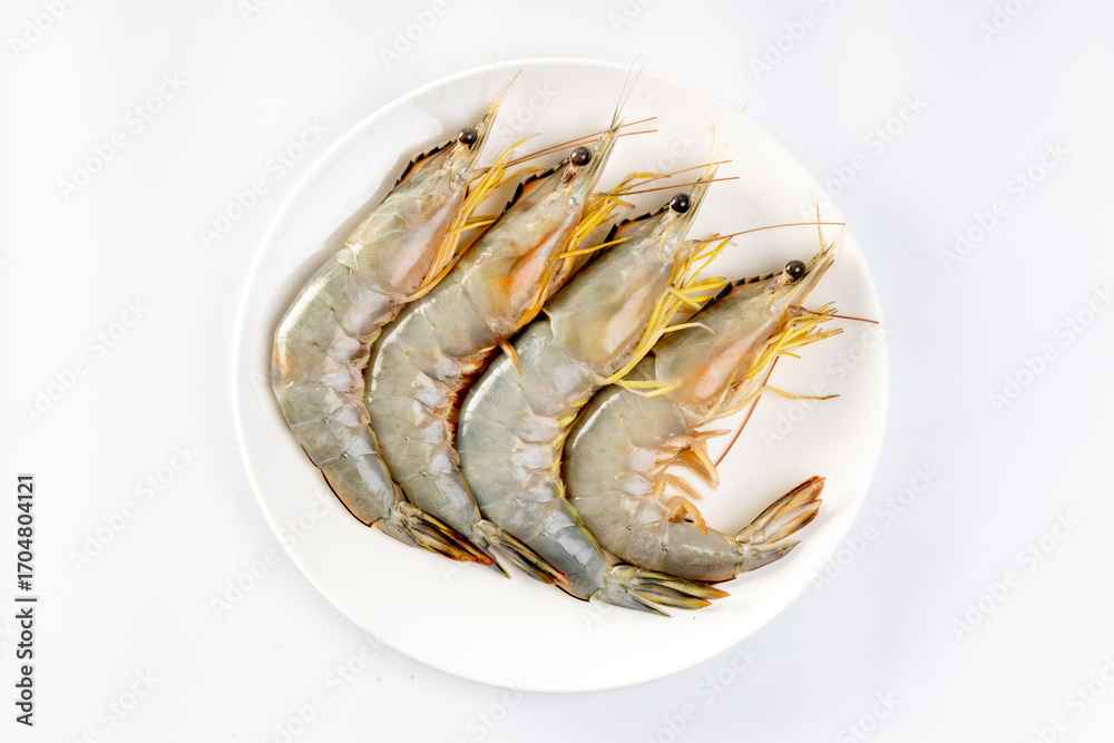 Raw shrimp on a white plate