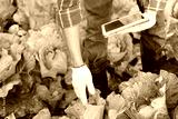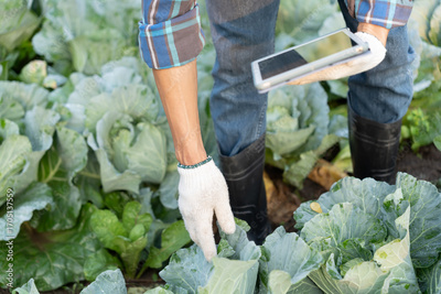 Farmers use the main data network in the internet, agricultural technology, work on crop data analysis by tablet ,technology for plantation data link with internet make a good plant organic product.