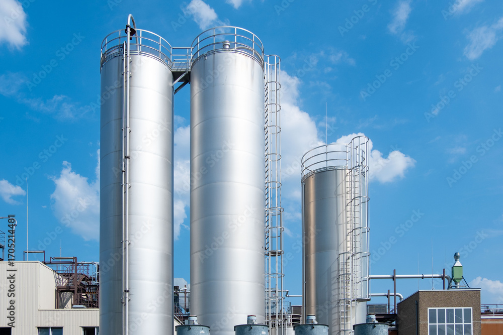 chemical storage tank, Industrial Chemiekonzern, plant, manufacturing and innovation, European industrial facility, Energy and Production, various tanks silo, Environmental Integration