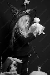 Cute little girl studio Halloween photoshoot