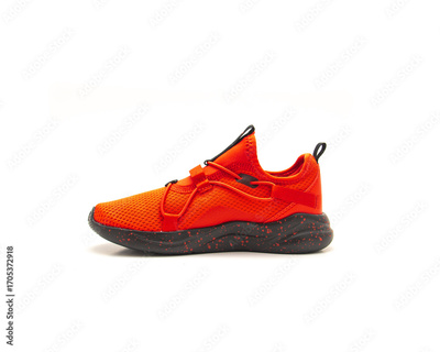 Red kid athletic shoe with breathable mesh upper, black rubber outsole, and pull tab. Side profile isolated on white background highlights sporty silhouette and toddler-friendly design