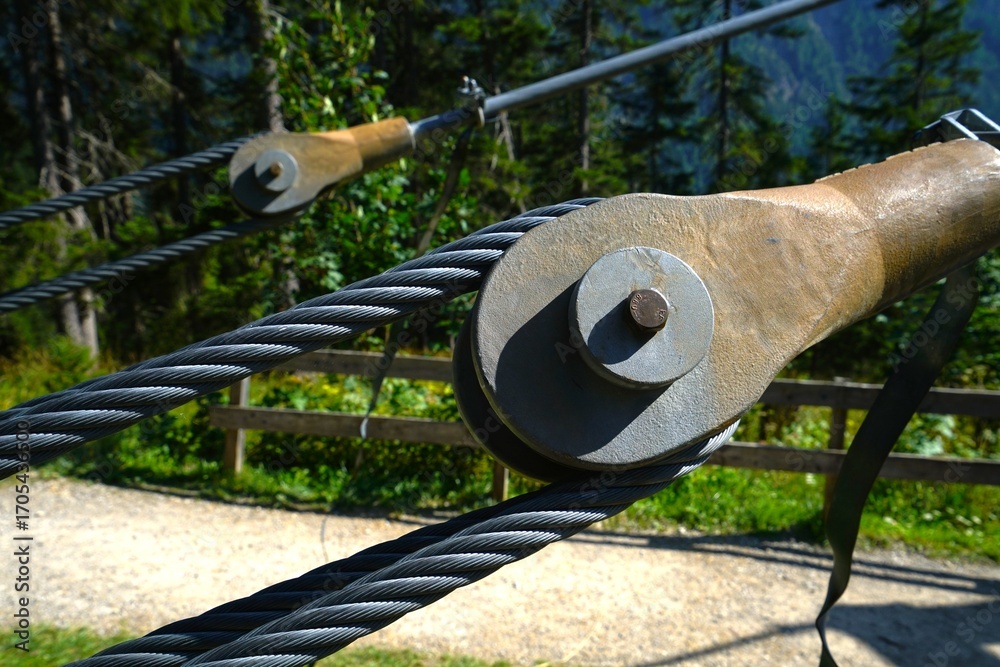 Wire rope support of a pedestrian suspension bridge in the Tyrolean Alps