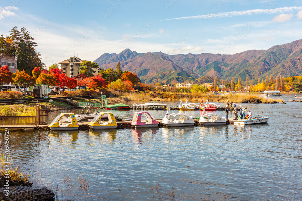 Autumn momiji season at lake Kawaguchiko, Fujikawaguchiko, Japan