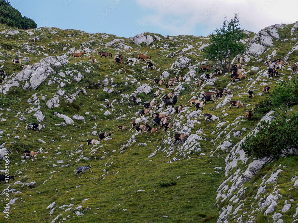 Dolomites mountains goat group flock