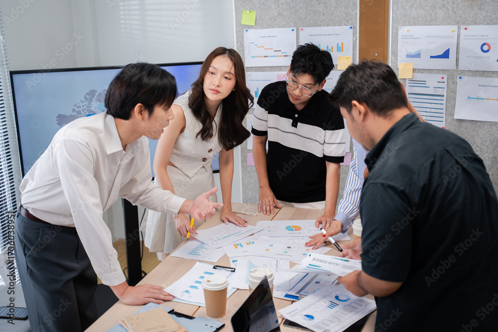 Investment Consultant,strategy,planning,Financial advisor and accounting concept.Group of business adviser meeting to analyze and discuss the situation on the financial report workplace office.