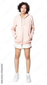 Woman png mockup in pink pastel jacket sportswear fashion full body