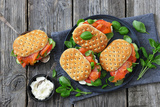 smoked deli salmon sandwiches with cream cheese