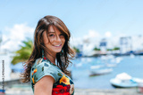 Young woman enjoying summer holidays in Arrecife, Lanzarote