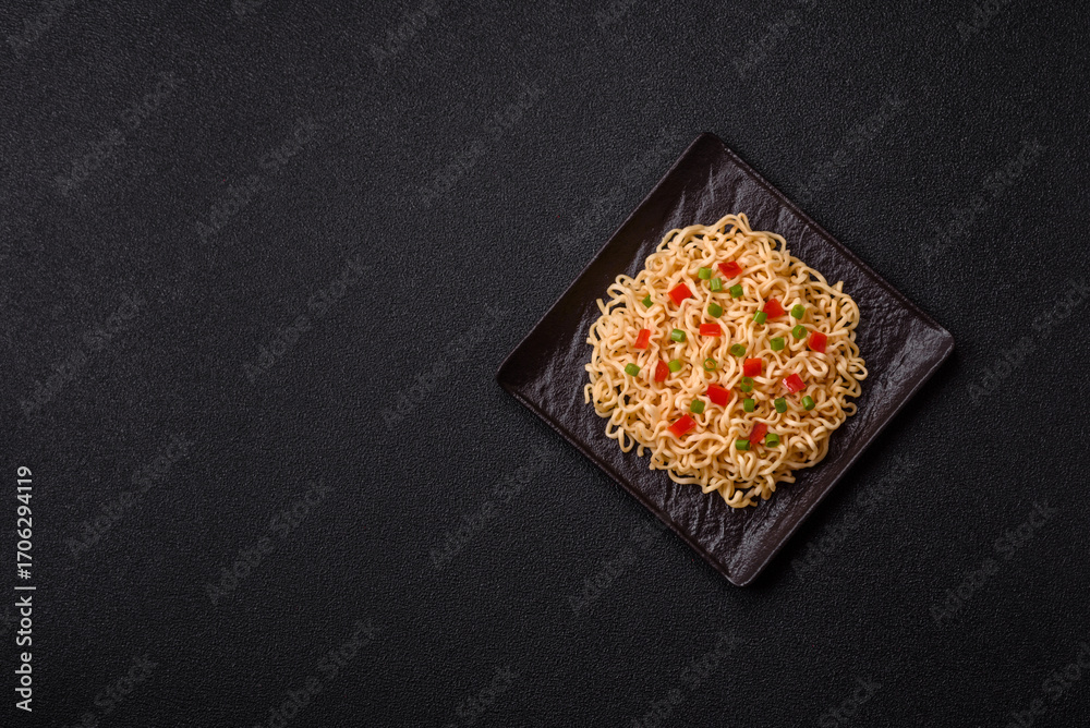 Asian food, chinese or thai rice noodles with vegetables and meat. Rice noodles
