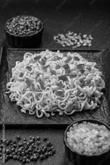 Asian food, chinese or thai rice noodles with vegetables and meat. Rice noodles