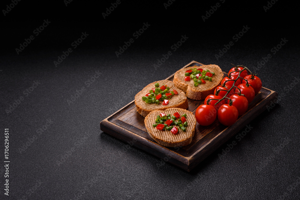 Vegan sandwiches with bread, mushroom or bean pate and vegetables. Vegetarian pate sandwiches