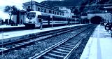 Railway Station of Sapri on the Italian west coast, with an Intercity train at the platform