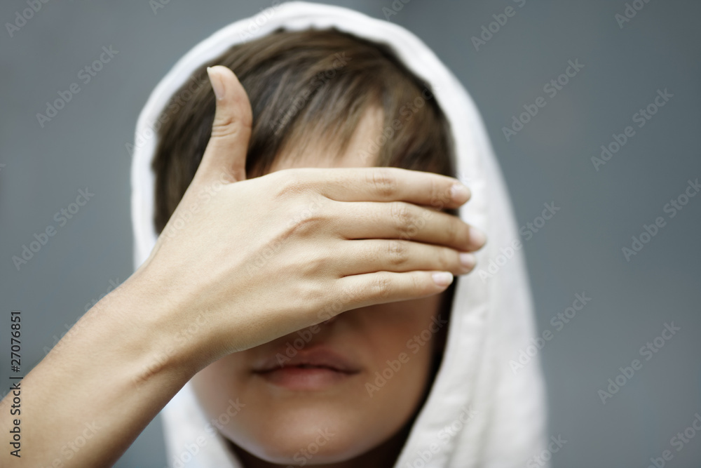 Young woman sorting through hangers with tank tops and dresses to choose her size. Customer in a clothing store